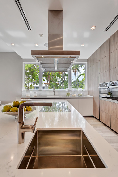 Given that fire and water are considered as being opposite elements, it is advisable for them to be placed away from each other. Vastu suggests that stoves should be placed in the south-east direction while the water elements like sinks and taps, in the north-east part of the kitchen.